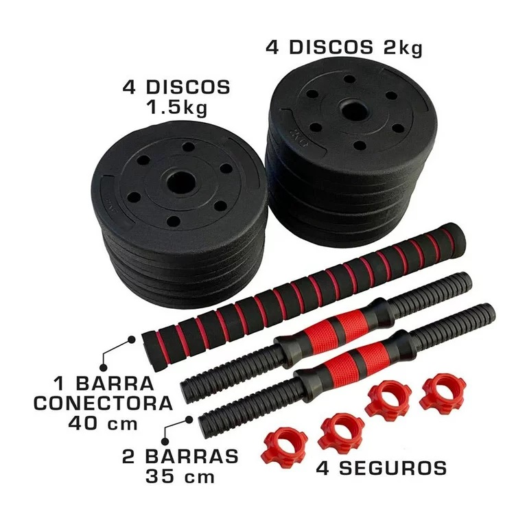 Kit de pesas 33 libras con barra y mancuernas cantidad